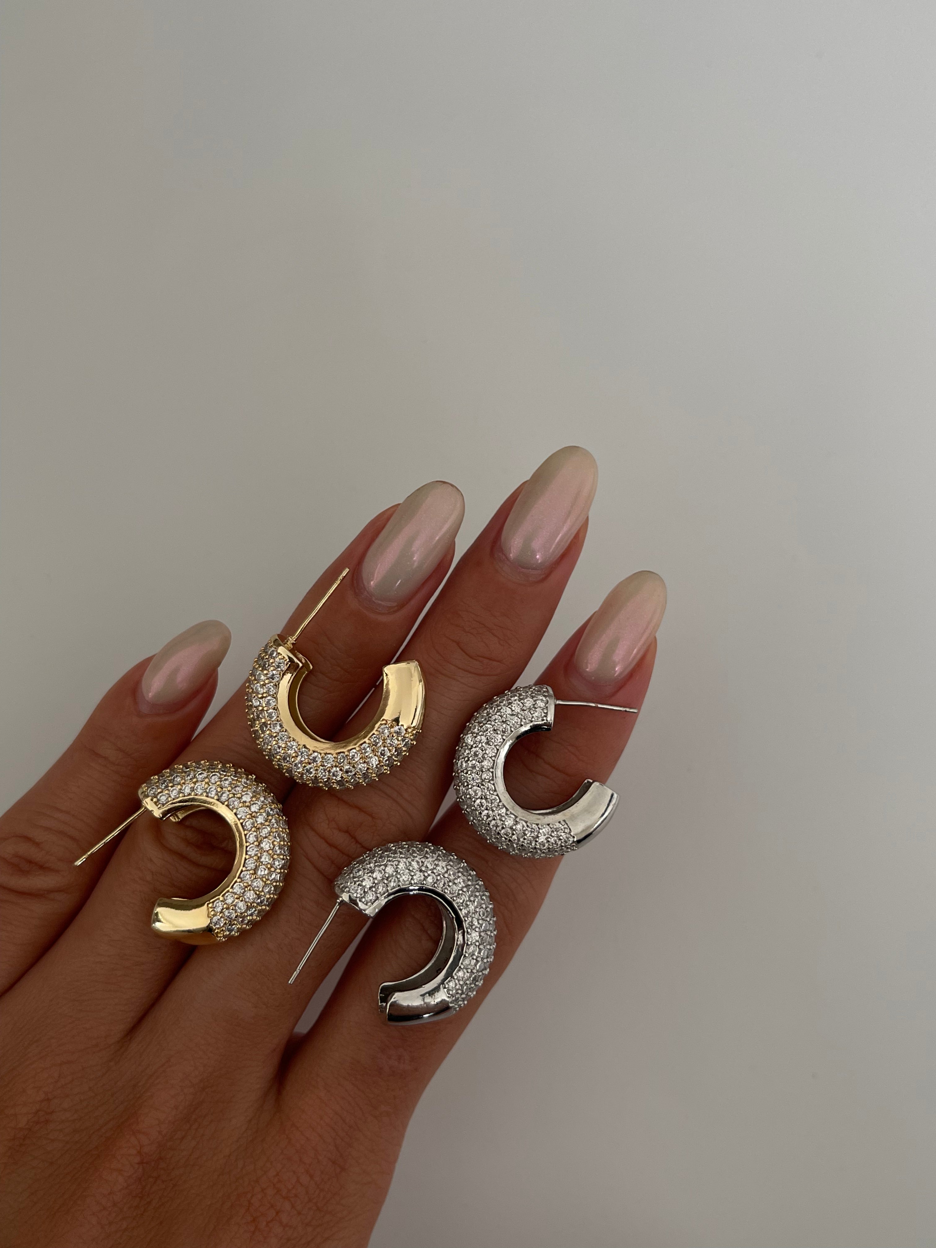 Taşlı yarım halka küpe